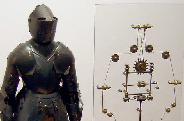 你甚至不能忽视列昂纳多·达·芬奇等,当远程讨论历史的发明,尤其是当讨论机械机器人。他的大部分工作是概念设计,但是没有实际的证据,一个设备。达芬奇研究了英雄的工作和他的解剖知识和建立自己的雕塑。莱昂纳多建造一个装甲骑士能够站起来,坐下来,移动,和面罩。使用零碎的幸存描述机器人专家马克2002年战后重建骑士。达芬奇机器人设计非常有效,甚至作为灵感来源为NASA战后的机器人。