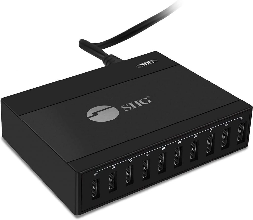 这些充电器每个端口可提供2.4A的最快充电速度,最大总输出功率为60W,可为10台智能手机和平板电脑充电。内置多个浪涌保护,以防止过度充电,浪涌和过热。当设备电池充满时自动停止充电,内置电源开关提供节能选项