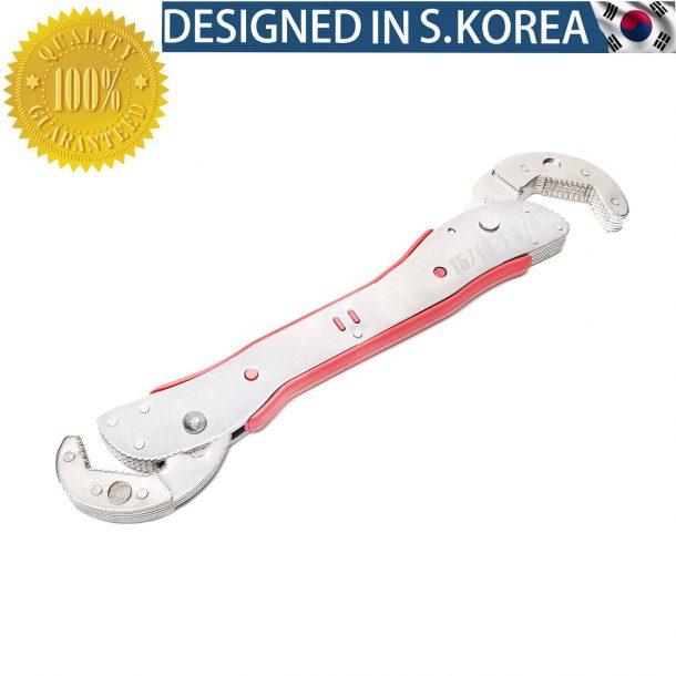 这种活动扳手是一种原装韩国制造的多功能,自调节双头棘轮扳手。它可以调整到一系列的大小,以收紧和放松不同大小的对象。它的特点是快速释放夹子,使您可以用一只手使用这个工具。它有一个塑料袋,以更好的保护,方便携带和储存。这是一个重型,耐用和防锈扳手镀铬的主体和一个方便的防滑手柄,以稳固的抓地力。它的深槽颌是由抗磨损硬化钢制成,锋利和粗糙的齿紧紧抓住物体。它提供了最大的扭矩与最小的力应用。