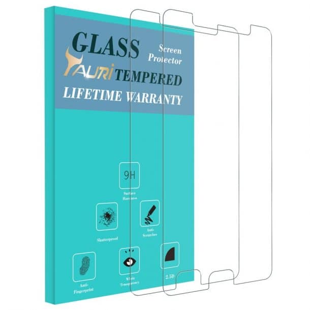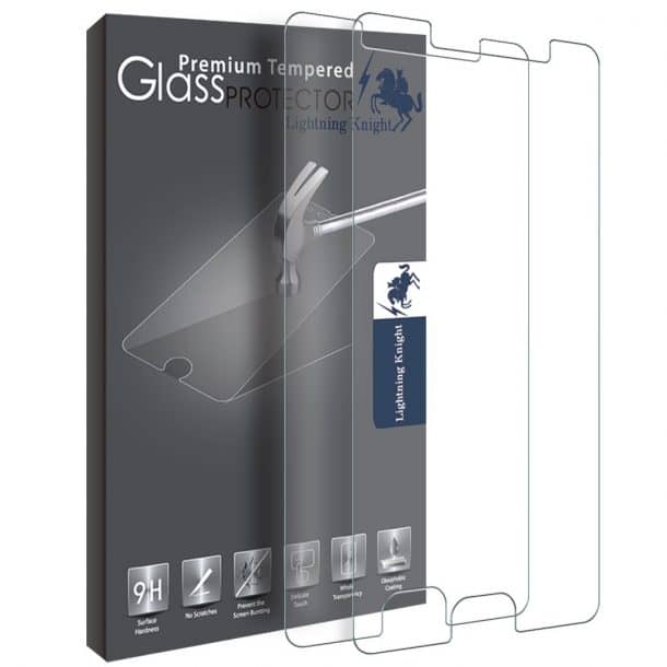 This unit by Tauri boasts 99% high transparency rate hence maintaining the original screen resolution. It has a hardness of 9H and is 0.33 mm thin hence adds no bulk to your phone. The precisely cut tempered glass offers full-screen coverage. Your phone is protected from high and low impact drops and shocks. The package comes with 2 x screen protectors installation instructions, 2 x wet/dry cleaners, 2 x dust collectors, 4 x removing tapes, 1 x bubble remover.