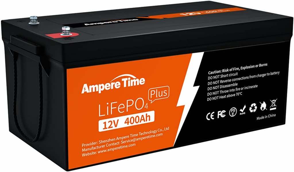 安培时间12 v 400啊磷酸铁锂电池内置250 BMS提供最大5.12千瓦时的能量,并支持max 250连续充电和放电电流和最大3.2千瓦连续负载功率。1 *安培时间12 v 400 ah电池容量的两倍比普通200啊电池,你可以建立你的电池系统,操作简单,没有担心电池连接。它满足您更高的功率和更长的电池运行时。
