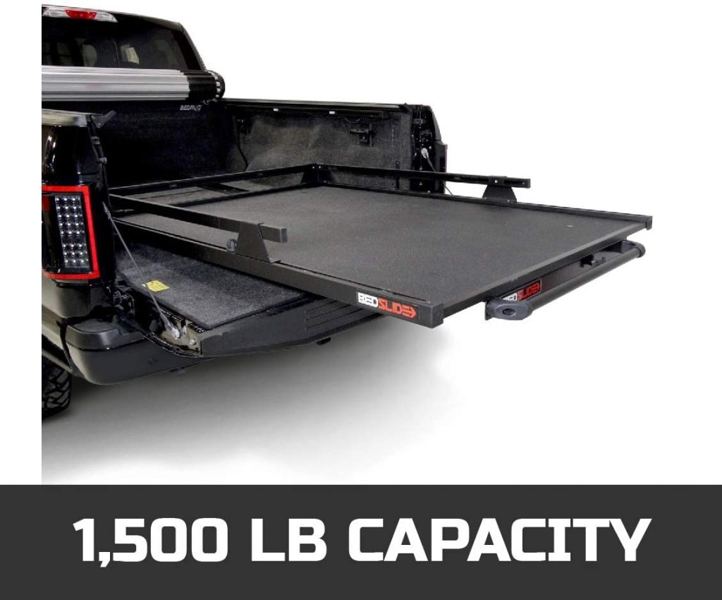 接下来,我们将拥有10-5839-CL 1000系列货物管理系统,适用于丰田塔科马(Toyota Tacoma)58英寸x 39英寸。这与放大床扩展器完全不同,因为它可以安装在卡车床的表面上,并在您想使用时滑出。它的容量为1000磅,延伸比正常人多75%。