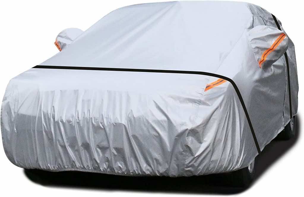 Kaugung多层覆盖采用最新的重型和安全的材料。它是100%防水,对防雨snowproof在冬天。高度反光的铝织物耐光性的,抗紫外线,让夏天凉爽。内衬是柔软的棉花,保护车漆看上去更好。
