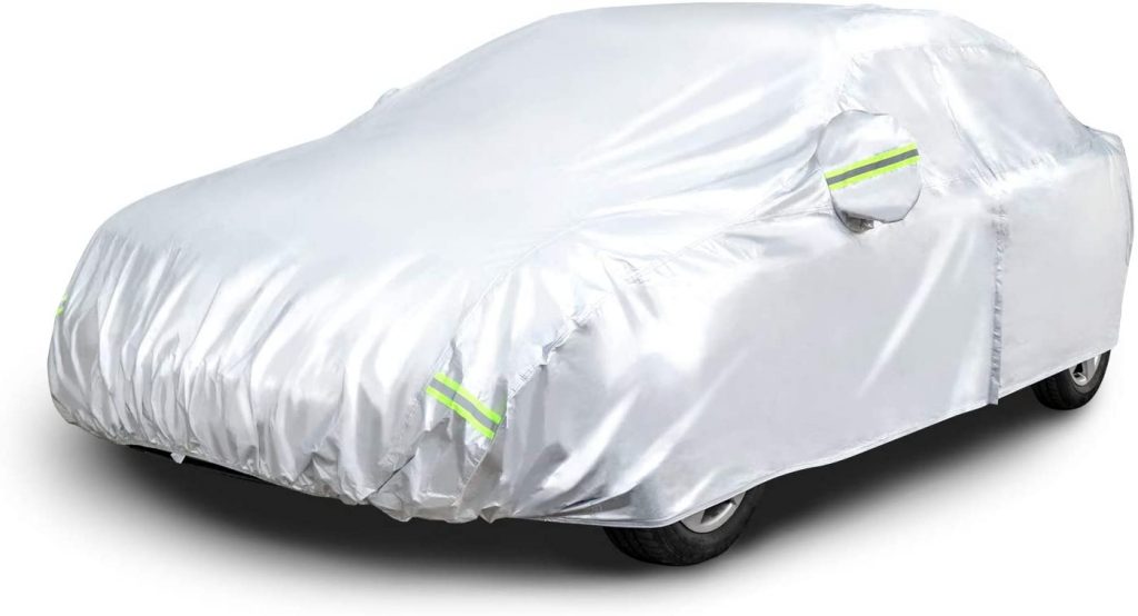 这款亚马逊基本车盖适用于你的本田思域,因为它的尺寸低于190英寸。它是由PE和EVA制成的,可以防水和防尘,棉可以让你的汽车不被刮伤,铝可以保护汽车免受紫外线的伤害。它被缝在一根松紧带里,以提供额外的弹性,并且有两个口袋用于侧视镜。