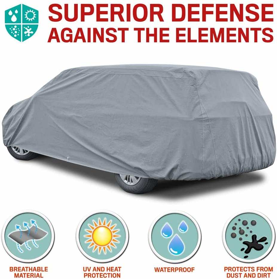 杜罗盖大小1使用三层spun-bond聚丙烯保护汽车免受灰尘、碎片、树液、水、紫外线照射和更多。超声焊接接缝提供额外的耐用性和研磨性衬不会划伤你的车。