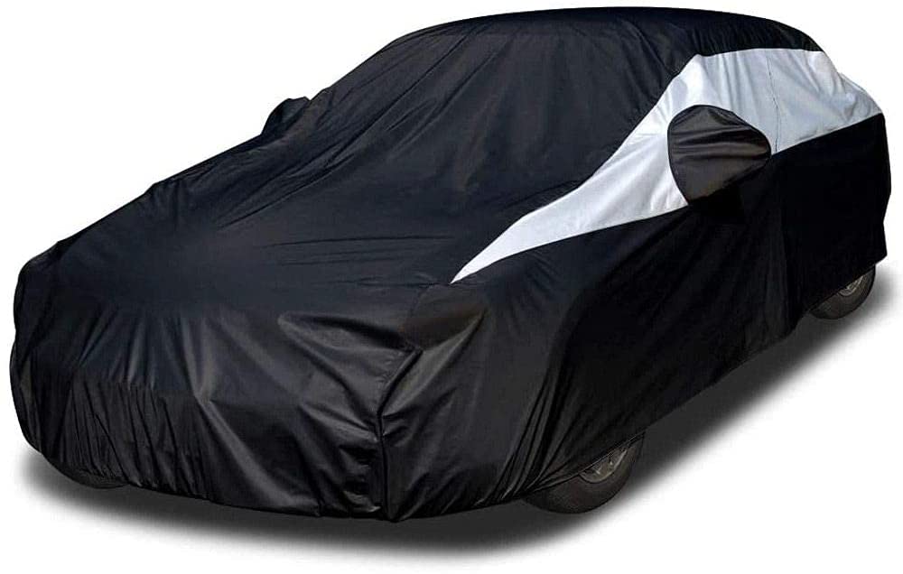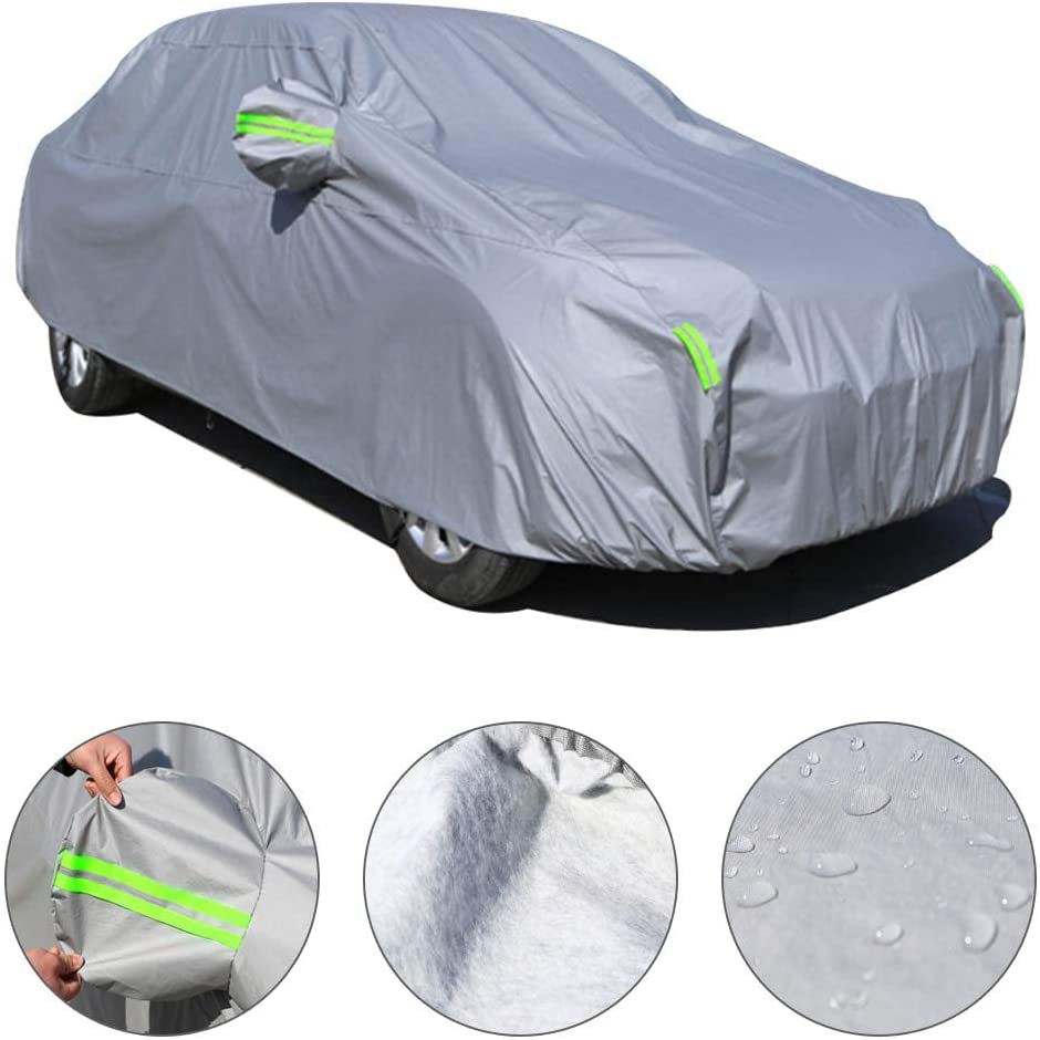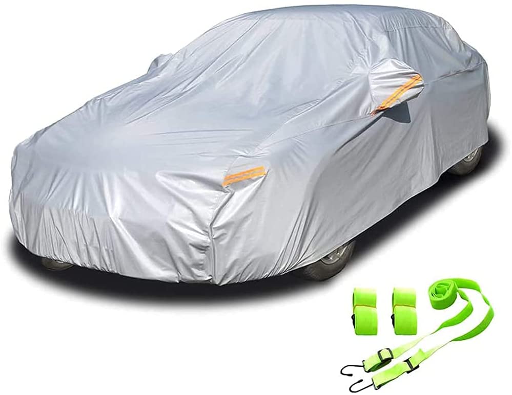 Tecoom汽车盖非常适合室内和室外使用,无论阳光或寒冷的天气如何,可以保护您的汽车免受紫外线,雪,雨,霜,沙子,沙子,灰尘,叶子,树枝,树枝,鸟类的掉落。这些封面由升级高密度的聚酯300D制成,它轻巧但耐用,足以保护您的汽车,最大的拉伸强度高达20 MPa。织物的纺织品是防水和热绝缘的,但可渗透和快速干燥。