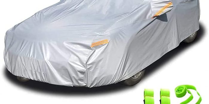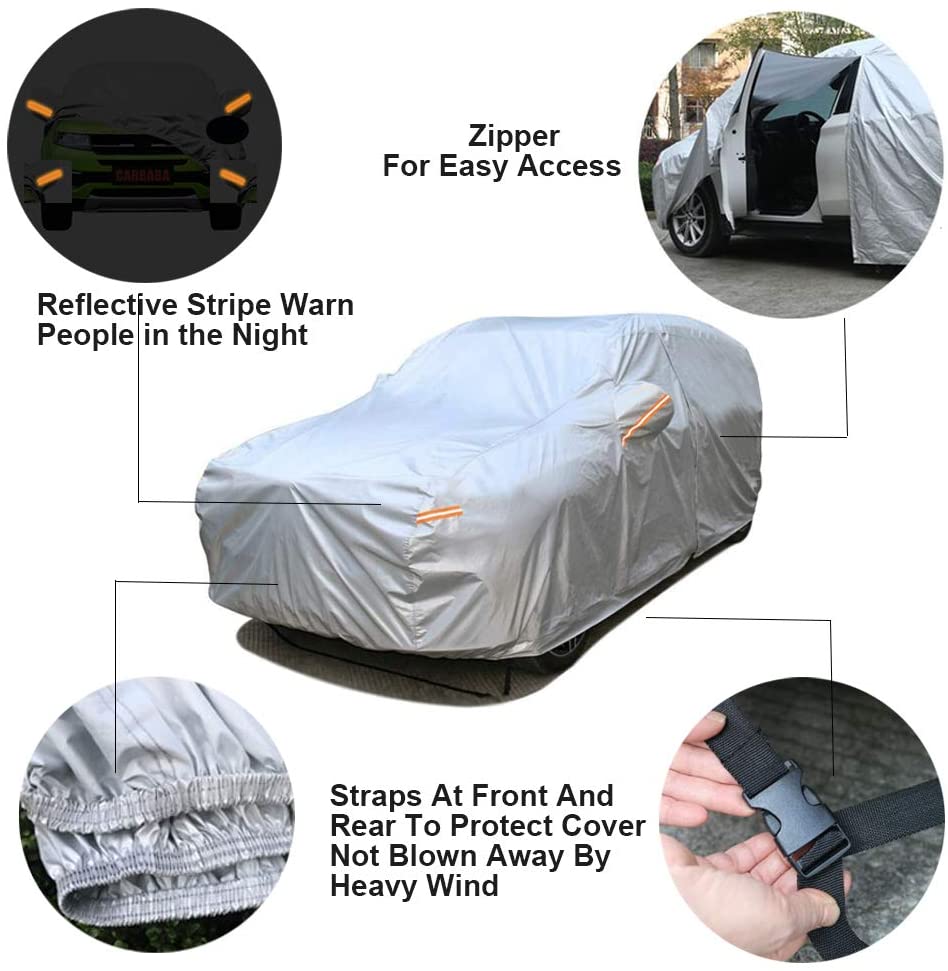 Kayme 6层汽车盖由重型材料制成。这些覆盖物是100%防水的,非常适合防雨雪。高反射铝在防晒和防乌瓦紫外线效果很好,可以使汽车在炎热的天气保持凉爽。较厚的棉花保护车辆油漆。Kayme多层材料比其他类似的6层产品更厚,更耐用。