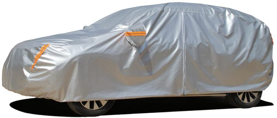 这KAYME汽车盖可在不同的尺寸,以适合您的汽车长度与完美。这些盖子是银色的,有反光条纹,有助于在黑暗中定位汽车。这个盖子由六层组成,其中包括一层铝制的紫外线防护层,使其防晒和防水。最里面的内衬是厚棉,以避免任何划伤的汽车油漆。