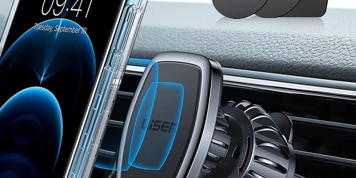 我们的首选是一键式车载电话座。这款神奇的产品可以安全地安装你的手机。它很容易安装和拆卸你的手机。它的磁线整理器的智能选项,使您的电缆整齐地组织。如果坐在后座上的人不能看手机屏幕,这里有一个解决方案,它灵活而稳定的伸缩臂可以延伸到8英寸,这样你就可以从不同的角度、方向和高度看手机。