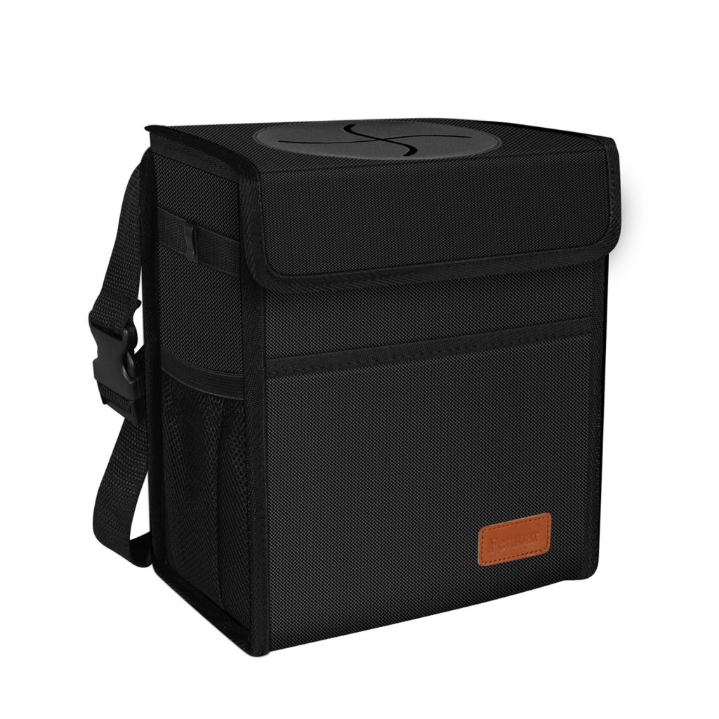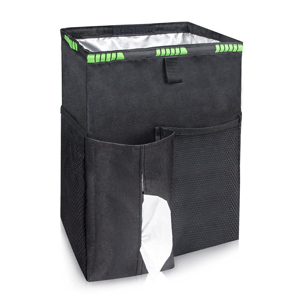 This trash can is made of 600D Oxford polyester, PEVA lined, waterproof and watertight, and durable. It is not easy to scratch and has a compact design that makes it a great accessory for your car’s interior, both for cleaning up and storing things while traveling.