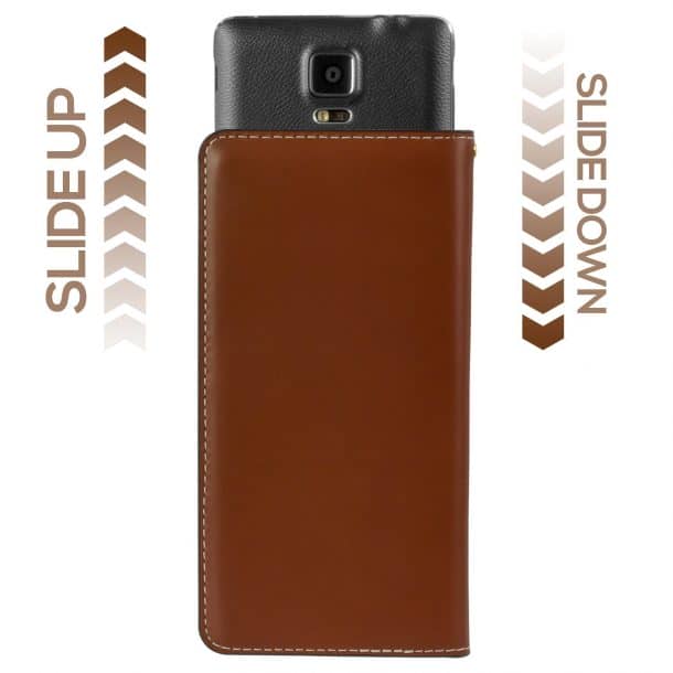 5.SOJITEK Acer Liquid Zest Plus棕色手工制作顶级纹皮钱包包,智能滑动/推上相机功能[$19.99]