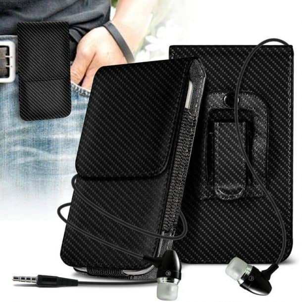 3.(黑碳)Acer Liquid Jade 2 Vertikale Kunstleder Gürtel皮套袋Abdeckungs-Fall & aluminum耳机ONX3®[$5.49]
