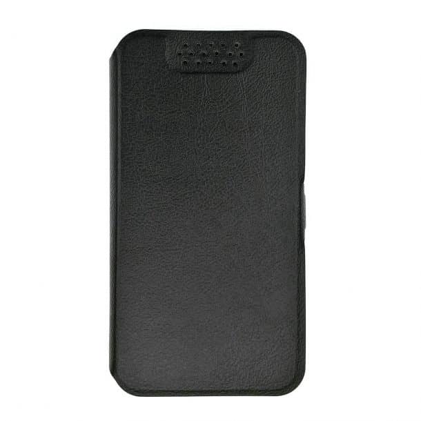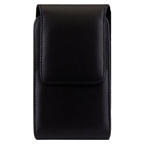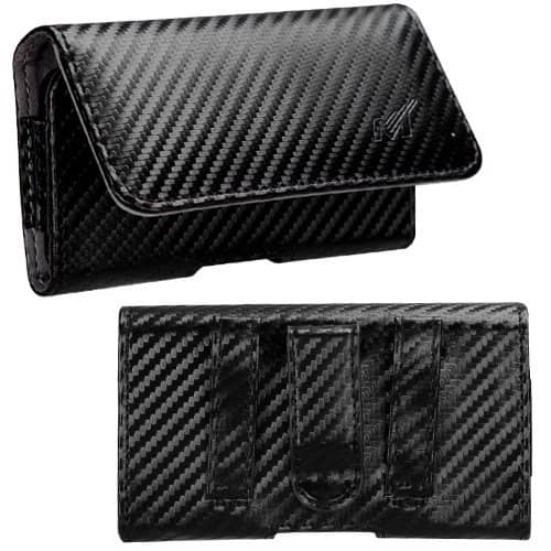 这是一个假的皮革袋,保证防止划痕和擦伤。外观是由优质皮革,而内部是由超细纤维,防止手机划伤或擦伤。一个磁扣吸附单元关闭。尺寸测量6.25 x 3.50 x 1。它是由更便携,可以在光滑的黑色,经典的黑色,碳纤维的颜色。