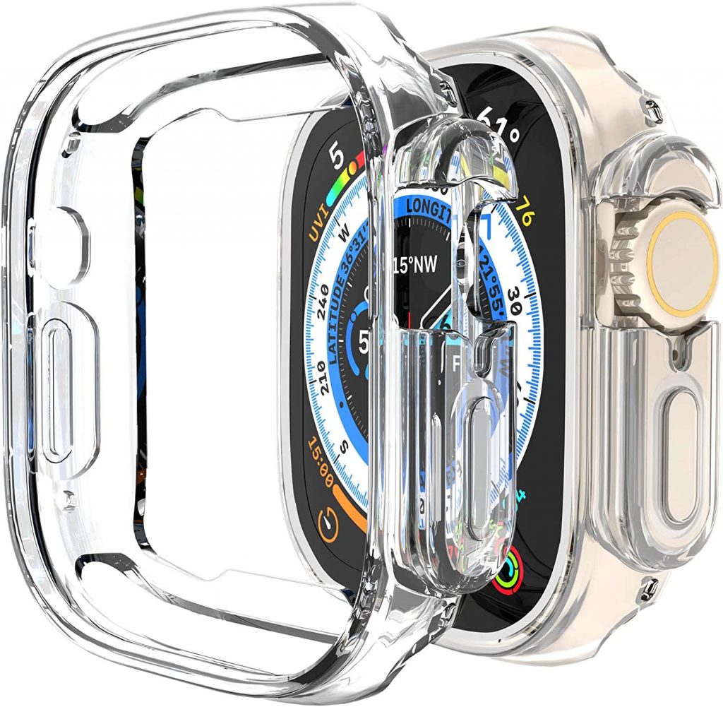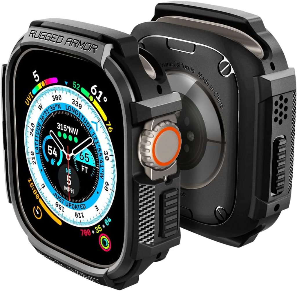 苹果看超正式宣布9月7日,2022年。smartwatch由苹果S8处理器GPU PowerVR时。平板电脑有一个1.92英寸视网膜LTPO OLED电容触摸屏,分辨率502 x 410像素。设备的屏幕保护,蓝宝石水晶玻璃+不间断显示。smartwatch的主体是由蓝宝石水晶,陶瓷/蓝宝石晶体,和钛框架。平板电脑是受一个不可拆卸的锂电池+无线充电。设备的传感器包括一个加速度计、陀螺仪,心率,气压计,不间断高度计、指南针、动脉血氧饱和度,最大摄氧量、温度(身体)和温度(水)。电话watchOS 9.0操作系统上运行。苹果看超有单一颜色:钛。smartwatch的维数是49 44 x 14.4毫米,重61.3克。 It supports eSIM, IP6X certified, 100m water resistant, 40m swim-proof/diving (EN13319), MIL-STD 810H certified, and ECG certified. The right case offers protection against scratches, dings, and cracks and allows you to personalize your watch often without adding much bulk or changing how you use your device. In this article, we have listed the 10 best cases for Apple Watch Ultra. Scroll down to explore more: