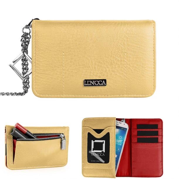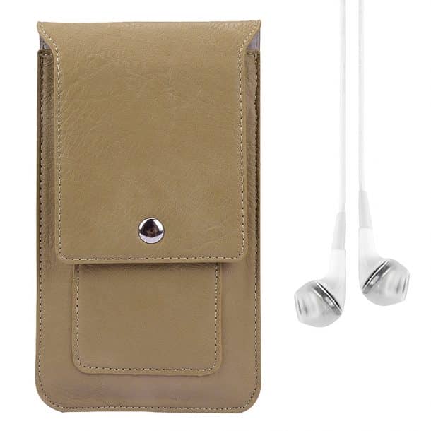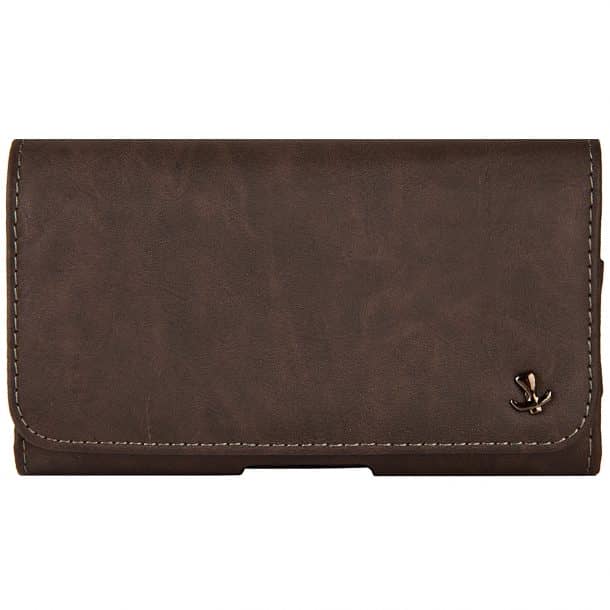 一个哑光棕色手机壳,尺寸为6.25″x 3.5″x 0.75,由Vangoddy设计。外部是一个耐用的PU和紧密编织尼龙和i内部功能柔软天鹅绒衬里,为您的设备提供一个无划痕的地方。专用金属夹和皮带环,让免提旅行方便。