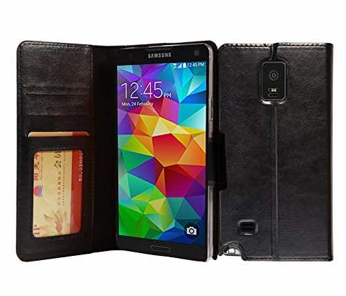 在这里,我们有三星Galaxy Note 4的Izengate案例,带有行政皮革翻盖,价格为12.99美元。它具有快速设计,并且还具有架子。箱子带有3个卡插槽和一条皮带,可以根据需要卸下。你可以买一个这里