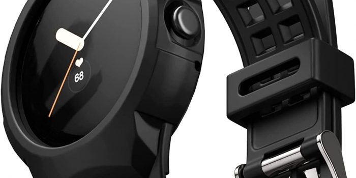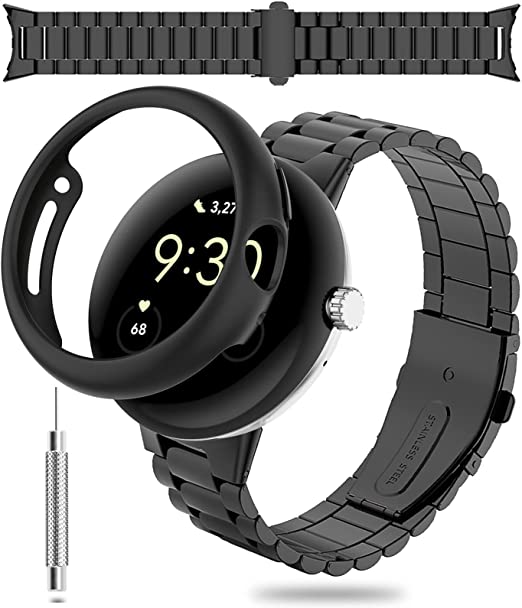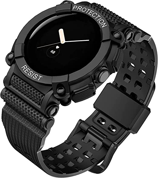 谷歌像素看正式宣布10月6日,2022年。设备是由一个玻璃前(Gorilla玻璃5)和不锈钢框架。它是50米/ 5 atm防水(IP68) eSIM和心电图认证设备的尺寸是41 x 41 x 12.3毫米,和重36克。smartwatch带有1.2英寸的AMOLED提供450 x 450像素和PPI密度是320。它还包括一个不间断显示和显示是康宁Gorilla玻璃保护5。该设备是推动锂电池+ 294 mAh无线充电。集成与加速度计等传感器,陀螺仪,心率、高度计、指南针、动脉血氧饱和度。谷歌像素看有哑光黑漆,抛光银,和香槟金。以电子邮件和即时通讯选项。smartwatch还有蓝牙5.0和GPS,挤满了32 GB的内存和2 GB RAM。 It runs on the Android Wear OS 3.5 operating system. The right case offers protection against scratches, dings, and cracks and allows you to personalize your watch often without adding much bulk or changing how you use your device. In this article, we have listed the 10 best cases for Google Pixel Watch. Scroll down to explore more: