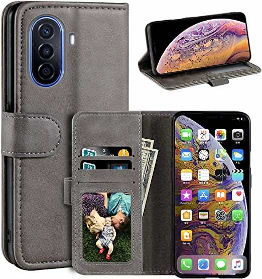 首先,我们有这些钱包形状的保护套,非常适合华为Nova Y70 Plus。这个商务封面有一个灰色的颜色,看起来时尚,给了一个实用,复古的设计。这款手机有3个卡槽,由优质的PU皮材料制成,手感柔软舒适。