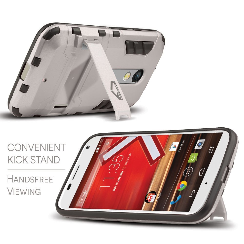 Moto X Play最受欢迎的选择之一。此案例有从双层保护到支架,再到拐角处的抬高嘴唇以保护屏幕。