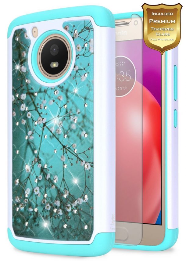这里有另一个闪亮的盒子给所有的珠宝爱好者。如果你想让你的手机和你一起发光,这款由乐毅设计的手机壳就是你所需要的。它还为你的手机提供了灵活的内部硅胶层和由人造皮革制成的坚固外层的保护。它为您的摩托罗拉Moto E4(美国)的屏幕和相机提供了更高的保护。它的硅胶角设计可以保护你的手机在掉落时不被损坏。您可以一个月的时间保修与每次购买。