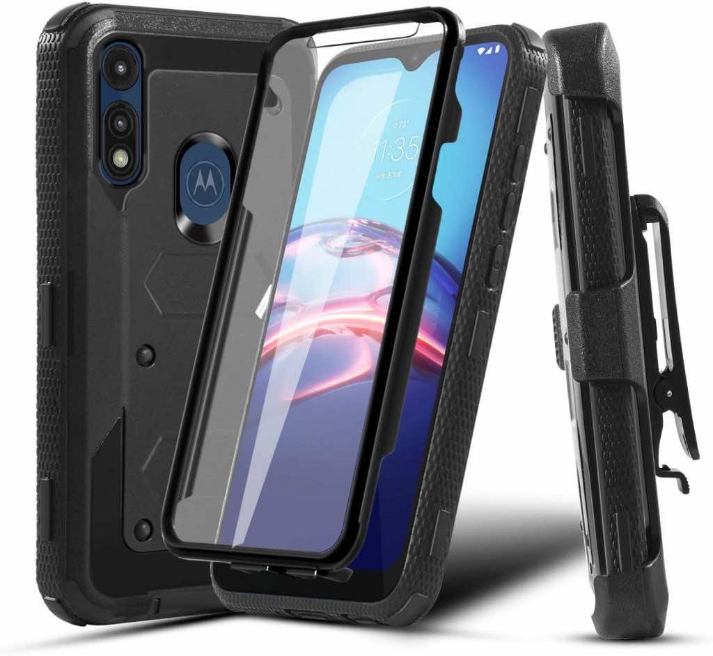 清单上的下一款是摩托罗拉Moto E7手机外壳和屏幕保护套的组合。由优质TPU材料制成,使表壳坚固耐用,同时柔软轻便。它提供可靠的保护,防止灰尘,划痕,油污,污垢和指纹。切口允许容易访问所有的按钮和充电端口。背面的拉丝纹理确保了手机的强力抓地力,内置的屏幕保护膜保护屏幕不受碰撞和冲击。