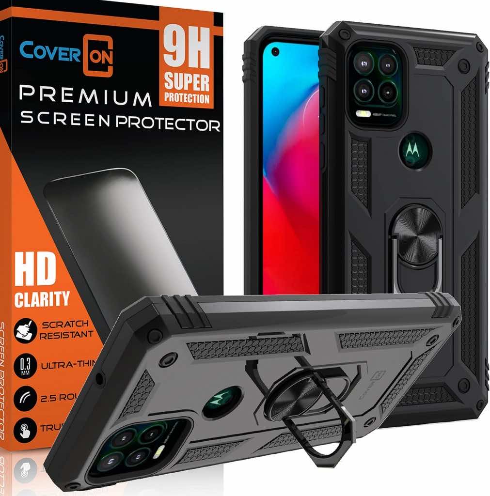 名单上的下一个选项MotorolaMoto G针5 G是CoverON的情况。优质皮革保护套提供最大保护设备对凹痕,划痕和碎片。很容易安装和给你的设备一个优雅的前景。港口和相机的图样不重叠。材料耐用,不容易磨损。翻转的情况下提供了方便的角度的视图内容和保护屏幕不受不必要的粒子。它也很容易随身携带。