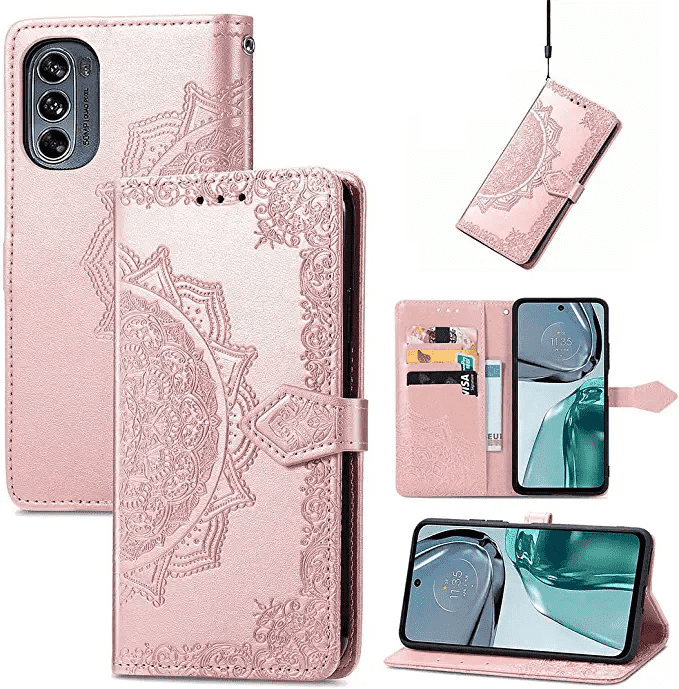 开始我们有这些情况列表是多功能翻转形状的情况下,符合摩托罗拉Moto G62 5 g。图样的港口,扬声器,和按钮的适当的和可以储存卡插槽和有钱的口袋。另可以放置水平作为支架更好的视角和免提。