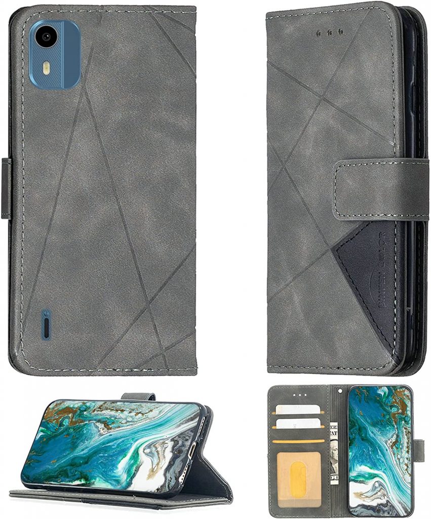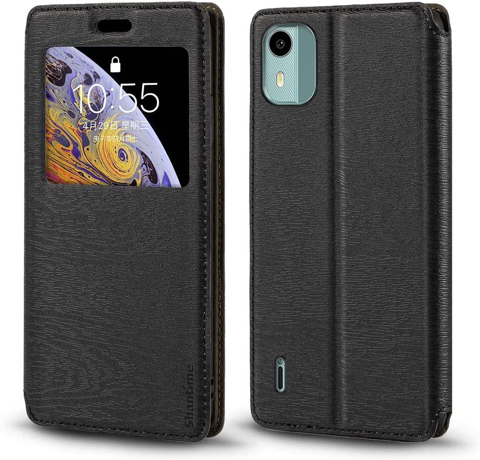 接下来是Jioeuinly诺基亚C12的皮包。这是一个皮包精密高档PU木纹皮革制成的,这提供了一个柔软的自然的感觉。优雅的皮革纹理创建了一个经典的和豪华的外观。聚氨酯皮革案例和内部软封面提供双重保护你的手机从任何抓挠和污垢。防震TPU内防止手机删除和碰撞。