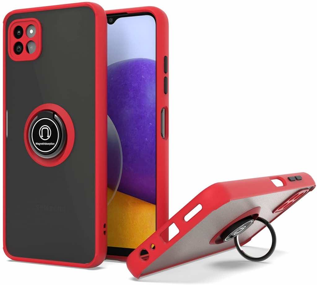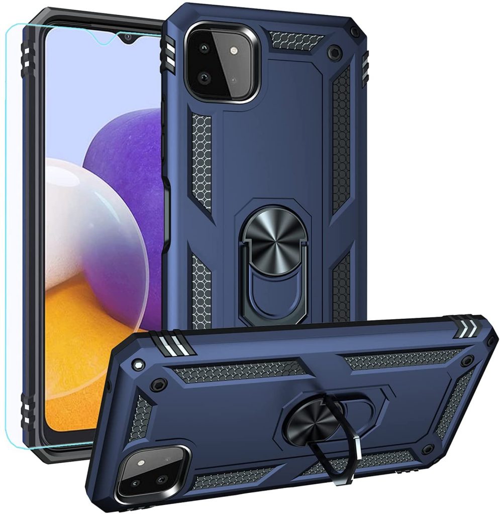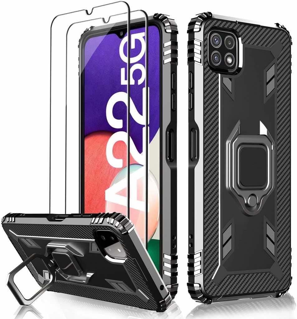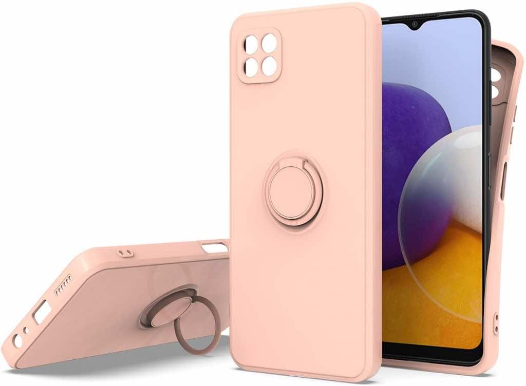 从列表开始,我们有三星Galaxy A22的戒指架壳。用最高质量的TPU材料和内部保护纤维层制成,以防止滴落和撞击的划痕。它具有金属戒指架,可让您轻松地在手机上观看电影,而无需将其握在24/7的手中。盖子是灵活的,易于通过精确的切口卸下。