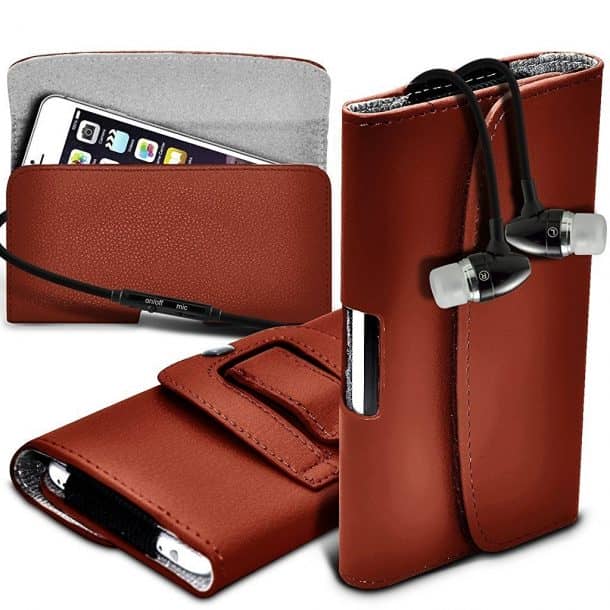 这个箱子是用最好的人造皮革制作的。盖子紧凑,耐用,将与您停留很长时间。这种材料可以使电话交易顺利进行。磁性关闭盖保持你的手机安全在里面的盖。它附带一套铝制耳机作为附加配件。