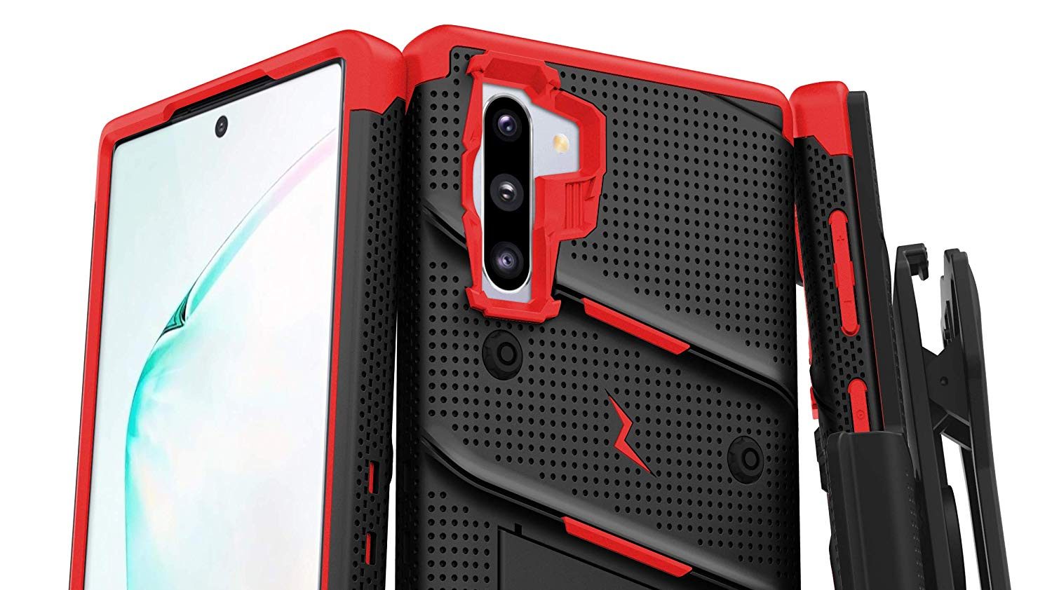 名单上的下一个案例是Zizo螺栓的三星Galaxy注意10,一个广泛的颜色和一个激进的设计。保护是一点问题也没有,因为它满足军用级12英尺。810.1 g合规认证来保护你的手机。它还配有内置支架,这意味着在你空闲的时间你可以享受你的手机免提。它还扔进9 h-hard屏幕保护器,确保360度的保护。