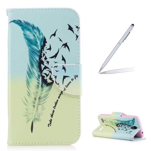 这是一个聚氨酯皮革钱包,中兴叶片A520定制设计。前盖的内部有三个袖子持有你的信用/身份证,以及一个口袋你的现金。皮瓣转换成免提和景观观赏的支架。体格健美的,持续时间长。可在10充满活力的设计!