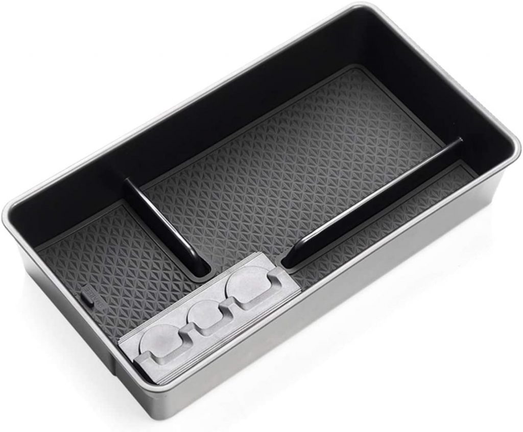这个中控台托盘为中控台增加了另一层存储空间,并提供额外的存储空间来管理你的手机、太阳镜、卡片、钢笔、硬币或其他小东西。这款中控台托盘扶手托盘采用优质ABS材料制成,坚固耐用,橡胶垫防止物品在托盘内滑动和嘎嘎作响。