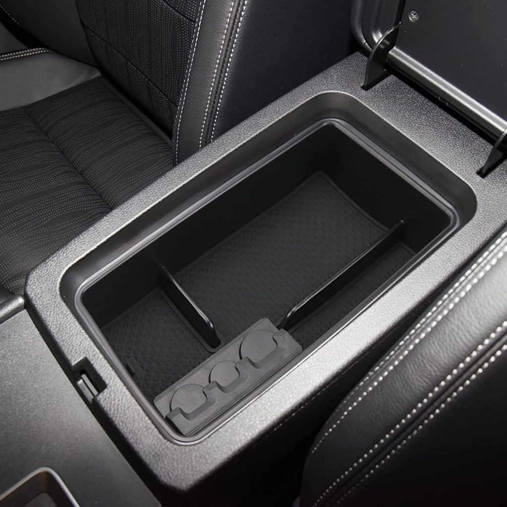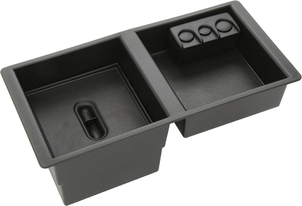 通过这个可移动的收纳器,可以更好地利用前中控台的储物箱。它的设计非常适合,这个组织者把高的箱子变成了一个两层的储物室。较大的项目可以存储在管理器下面,而较小的项目,手机等可以存储在管理器本身。此外,一个可移动的硬币持有人包括在内。