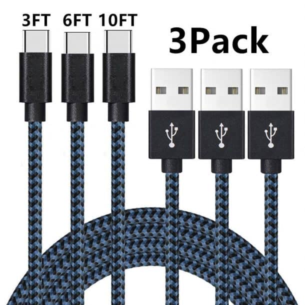 USB C充电线,呼呼塔3包6英尺尼龙编织[$9.99]