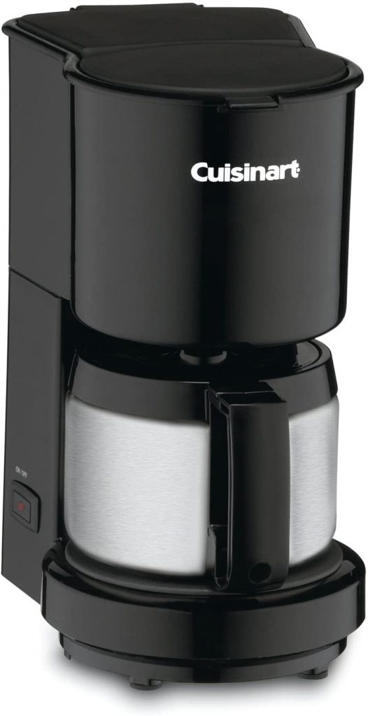 Cuisinart DCC-450BK 4杯咖啡机在我们的10个最佳紧凑型咖啡机中排名第三。Cuisinart制作的DCC-450BK咖啡机可以在名称所建议的同时最多制成4杯咖啡,并具有漂亮的小酿造式功能,可让您在酿造功能完成之前享用一杯咖啡。