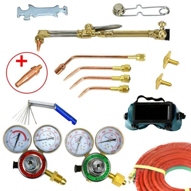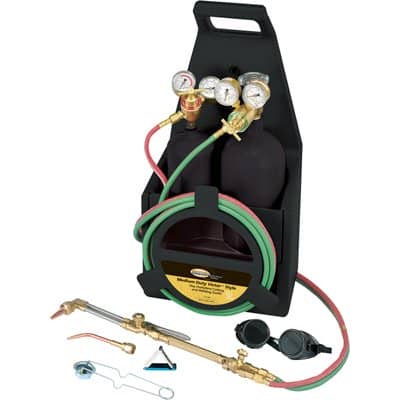 这个割炬的工具包是完美的焊接,焊接、切割、测量和其他应用程序。它有四种不同大小的焊接喷嘴和15′x 1/4”焊接管。该工具包包含一个火炬手柄,一个氧调节器和一个乙炔调节器。