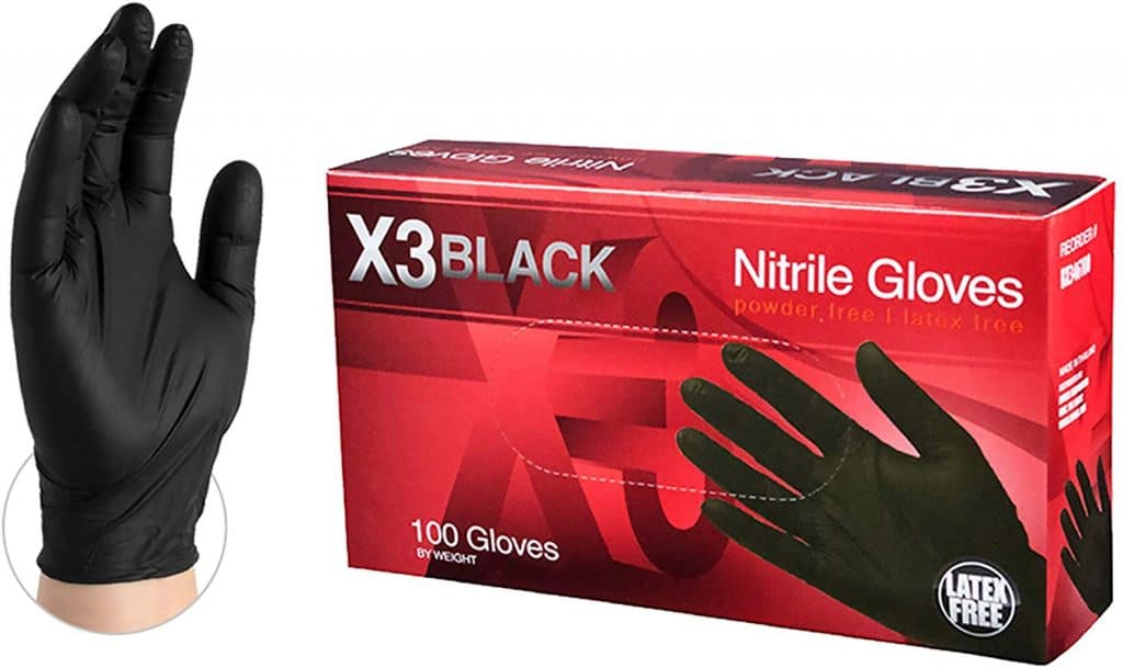 5.X3工业黑色丁腈手套- 3毫升,无乳胶,无粉末,一次性有质感