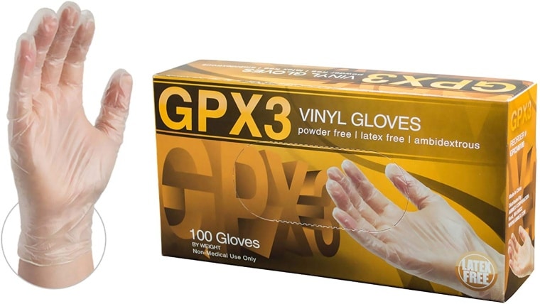 6.GPX3工业透明乙烯基手套- 3毫升,不含乳胶,不含粉末,一次性,小,GPX342100-BX,一盒100