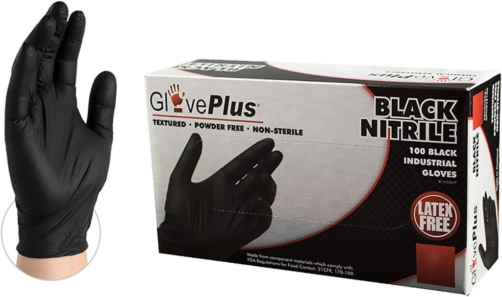 4.AMMEX GlovePlus工业黑色丁腈手套,一盒100,5毫升,不含乳胶,不含粉末,有质感,一次性,GPNB44100-BX