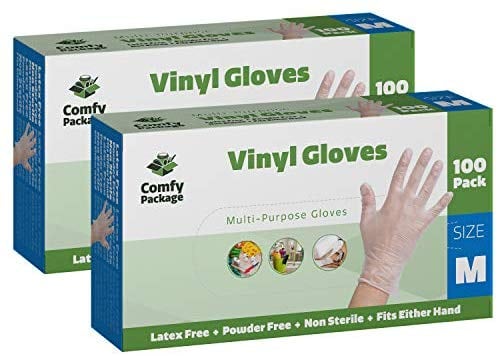 1.基本物品医用一次性乙烯基手套|中号| 100计数|无乳胶粉|超强非无菌|用于家庭,办公室,厨房,烹饪,日常使用
