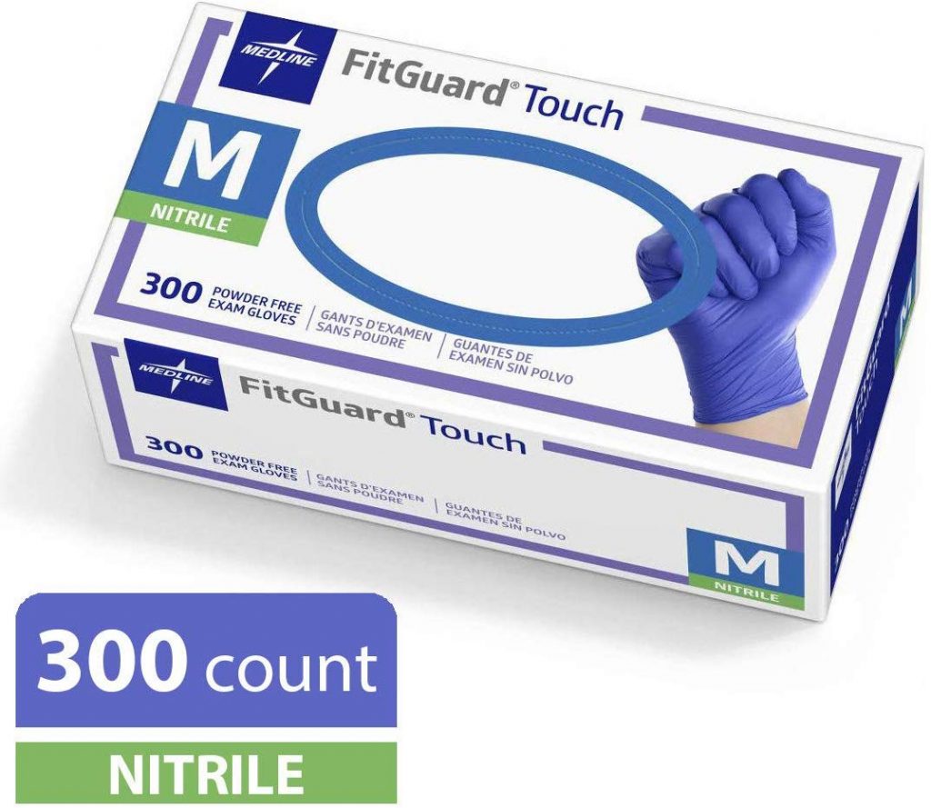 7.Medline FitGuard接触丁腈检查手套,一次性,无粉,钴蓝,中,盒300
