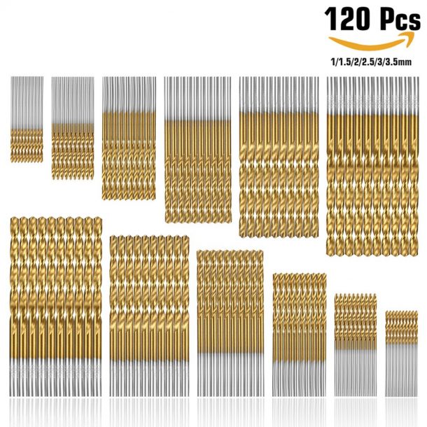 该钻头组由120件钻头组成。所有的钻头均由具有高硬度,良好耐磨性和耐用性的高速钢制成。这些位具有钛涂层表面,可增加其耐用性和弹性。它们最适合在合金钢,木材,非有产金属,铸铁和硬塑料中钻孔。