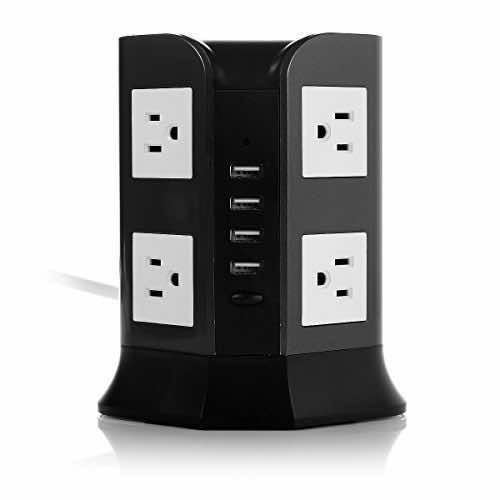 这个垂直电源插座比其他插座更能节省空间;这种设计还使您可以插入多个设备,而无需更换一些连接来腾出空间。它配有一个950焦耳的电涌保护器和4个USB插座。