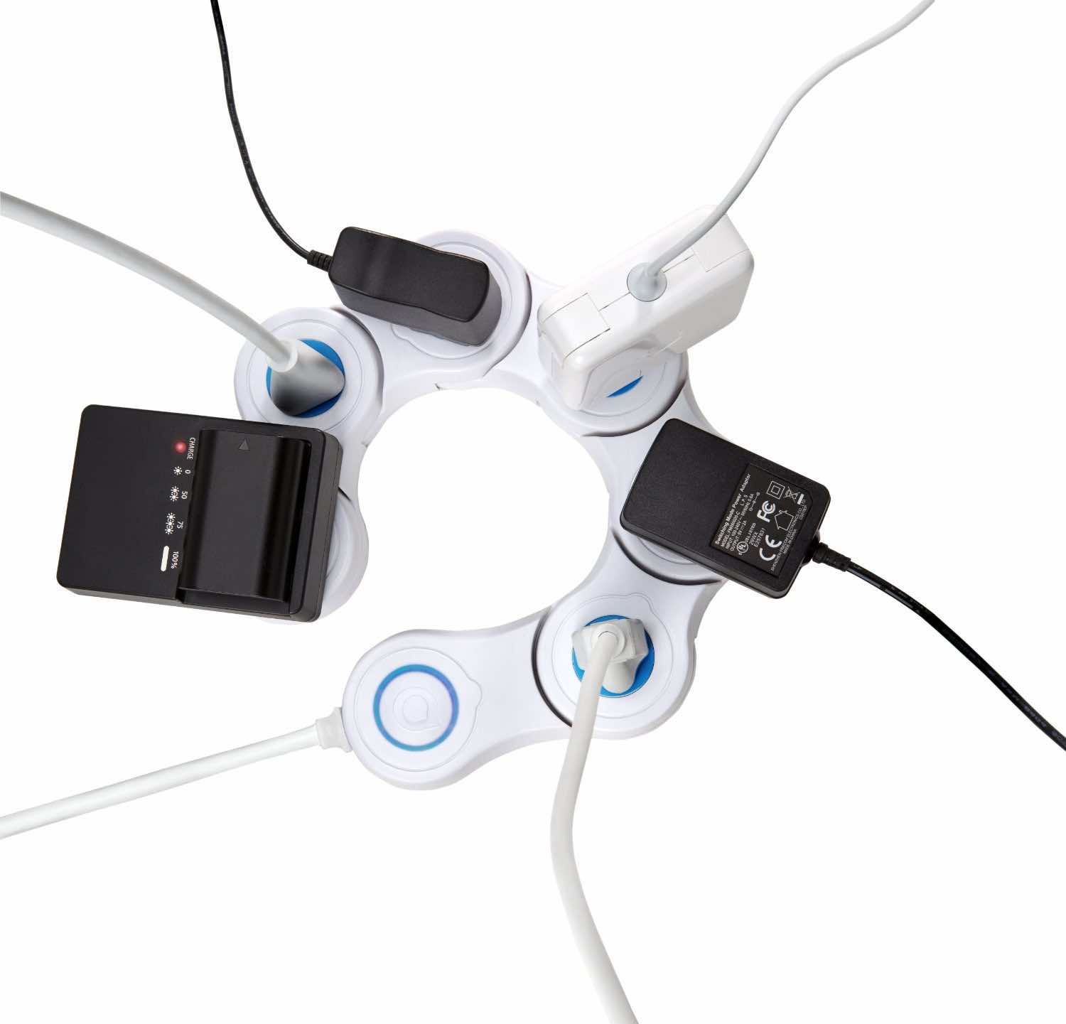 这条大型延长线有8个交流插头和5个USB电源插座,可输出2.4安培。该设备的最大输出是1750W和1700焦耳浪涌保护器。虽然配置很好,但体积很大。