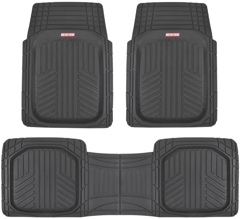 汽车趋势flextough重型垫子易于贴合,其带有深盘工程通道的倒壳设计对任何形式的污垢都无法穿透。它们为您的汽车地毯提供了全部覆盖范围。这些地板衬里以优质的橡胶建造,可以抵抗温度范围,而不会损害其耐用性,强度和弹性。这些地板覆盖物是无味的,因此无需喷涂或洗净预安装。可以通过卸下垫子并将其冲洗掉很容易地驱逐被困的污垢
