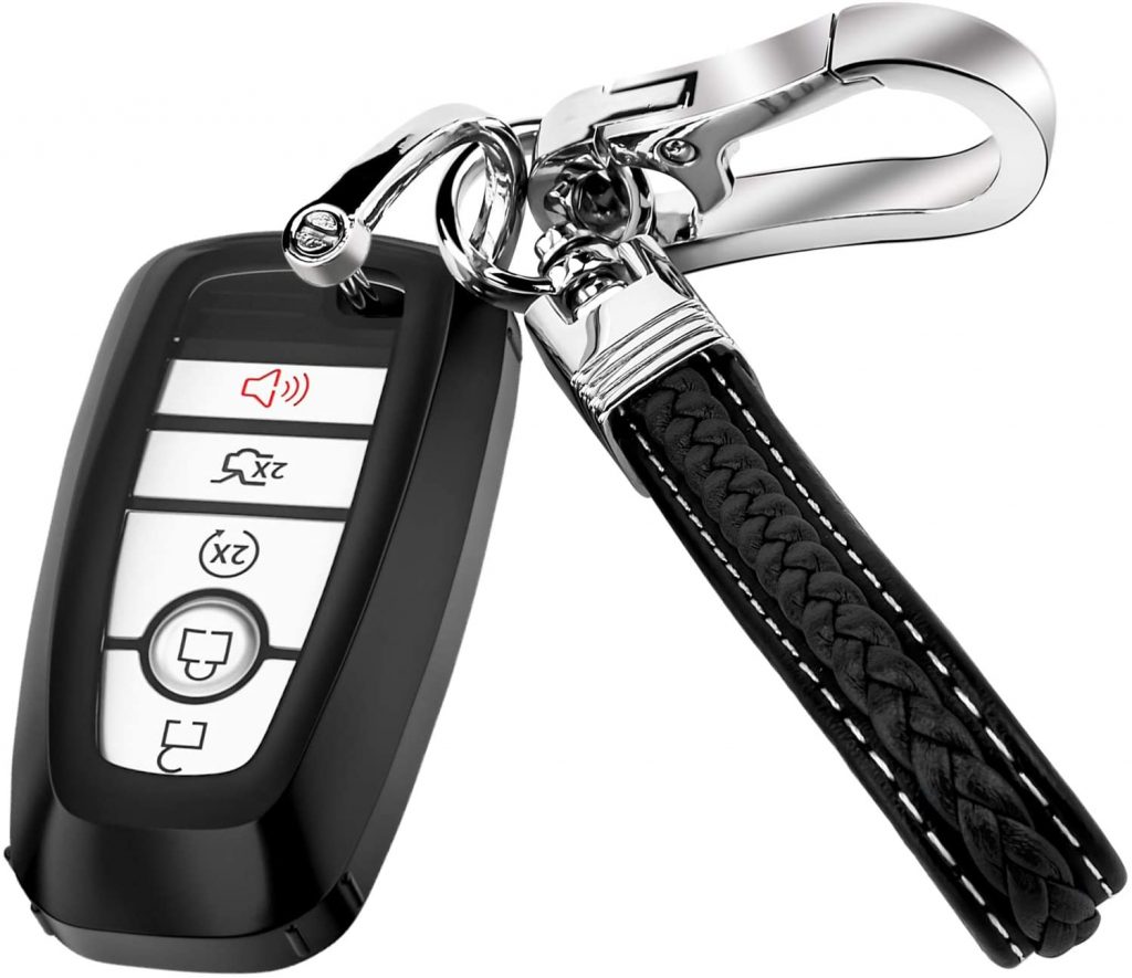 9.钥匙FOB盖盒软tpu钥匙支架全覆盖范围的汽车钥匙扣,带皮革钥匙扣挂绳,用于福特逃生