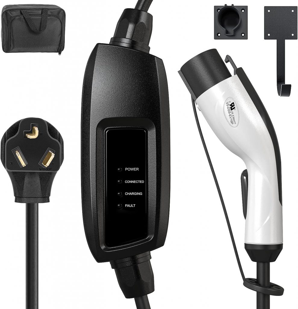 VEVOR 16 1 + 2级便携式电动汽车充电器设计使电动汽车充电快速和轻松。这个EV和NEMA 6 20便携式充电器插头可以充电汽车4 x速度比另一个8一级电动车充电器你之前使用。