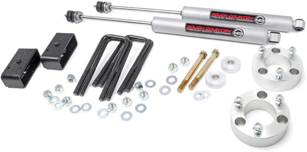 接下来,我们为丰田塔科马(Toyota Tacoma)拥有粗糙的国家3英寸升降机套件。该升降机套件由飞机优质的坯料铝制成,可用于越野和公路性能和用途的极好的减震器。如果您直接从制造商Rough Country购买,它还具有终身保修。