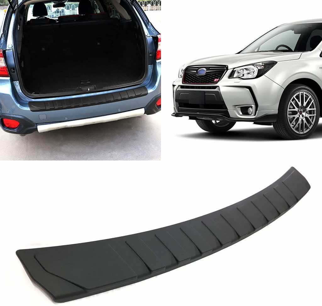 这款后保险杠覆盖保护器兼容斯巴鲁森林人2013-2018。后保险杠盖保护器给您的汽车一个独特的新外观,以及增加的功能,防止磨损,刻痕,划痕,和其他破坏性的标记。这些是由汽车级耐紫外线耐用黑色PVC,设计为最大覆盖,纹理表面,槽设计,超薄型材。